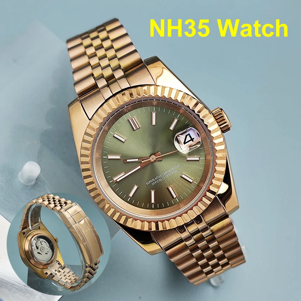 New NH35 Watch Men's Watch Automatic Mechanical Watch Stainless Steel Watch Rose Gold Watch Sapphire Glass NH35 Movement Watch