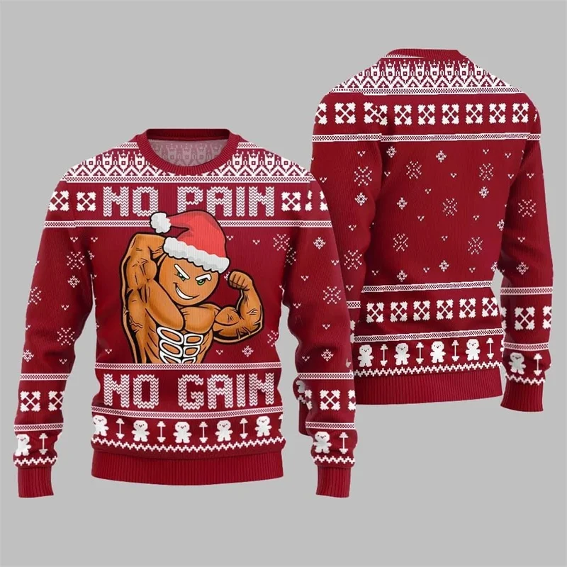 Gingerbread Pattern hoodies for man Christmas Ugly Sweater Fun Food Pattern Neck Pullover Sweaters Men's clothing gifts for men